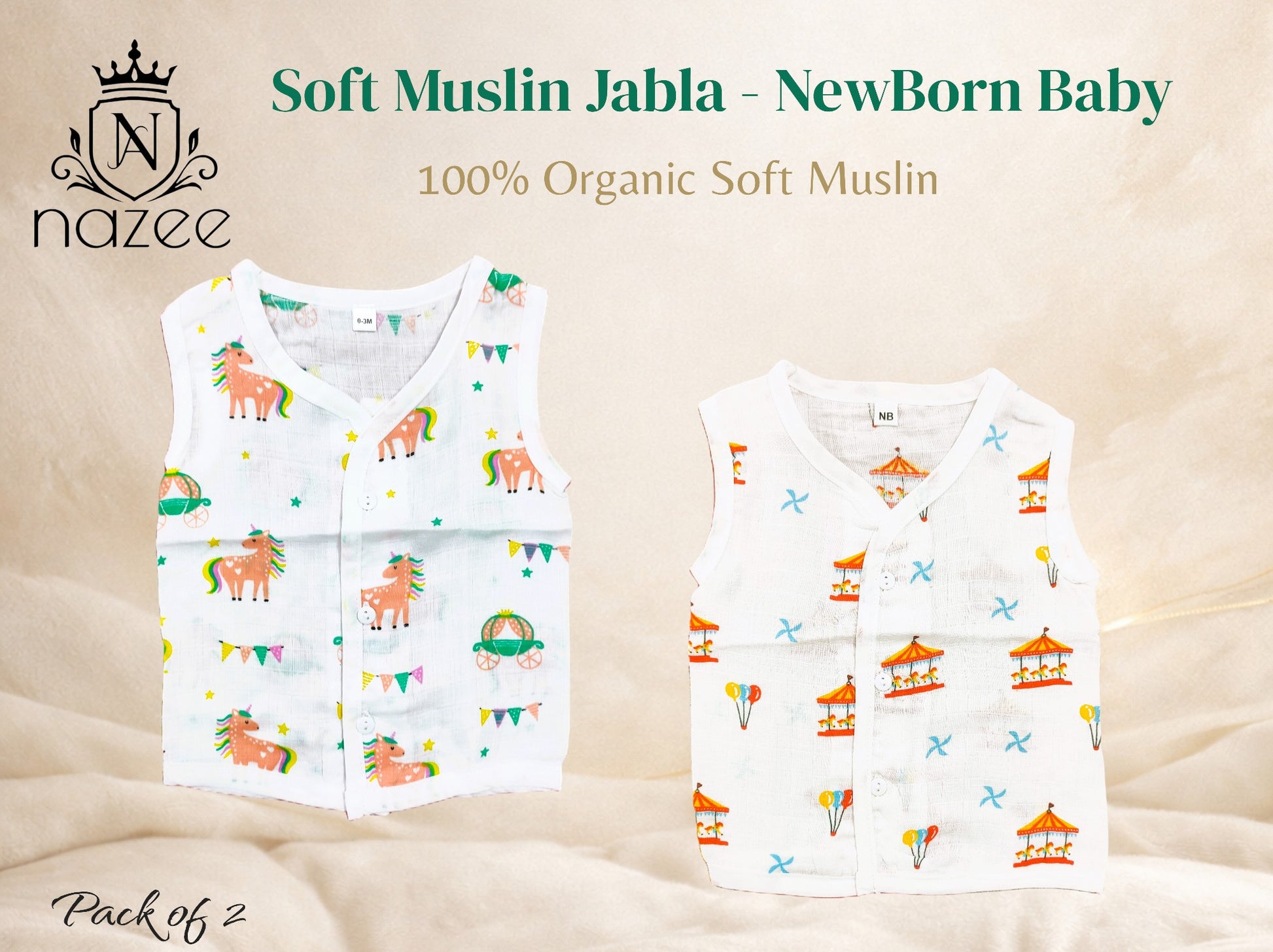 NewBorn Baby Jabla - Sleeveless Button Jabla Top Only - Pack of 2 (Model: JB-SL-B-1-201)